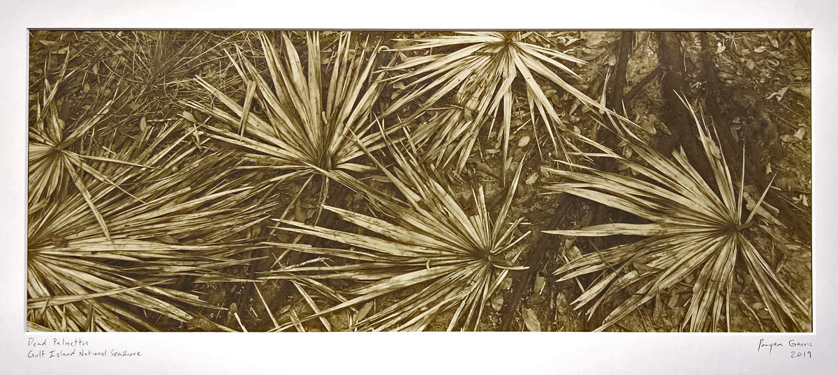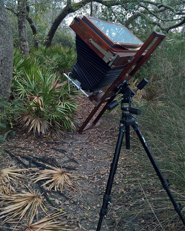 Another image of dead palmettos, toned to match their color. This one was taken with a 100-year-old 8x20 inch camera and contact printed. Here is my camera setup just before taking this photo: