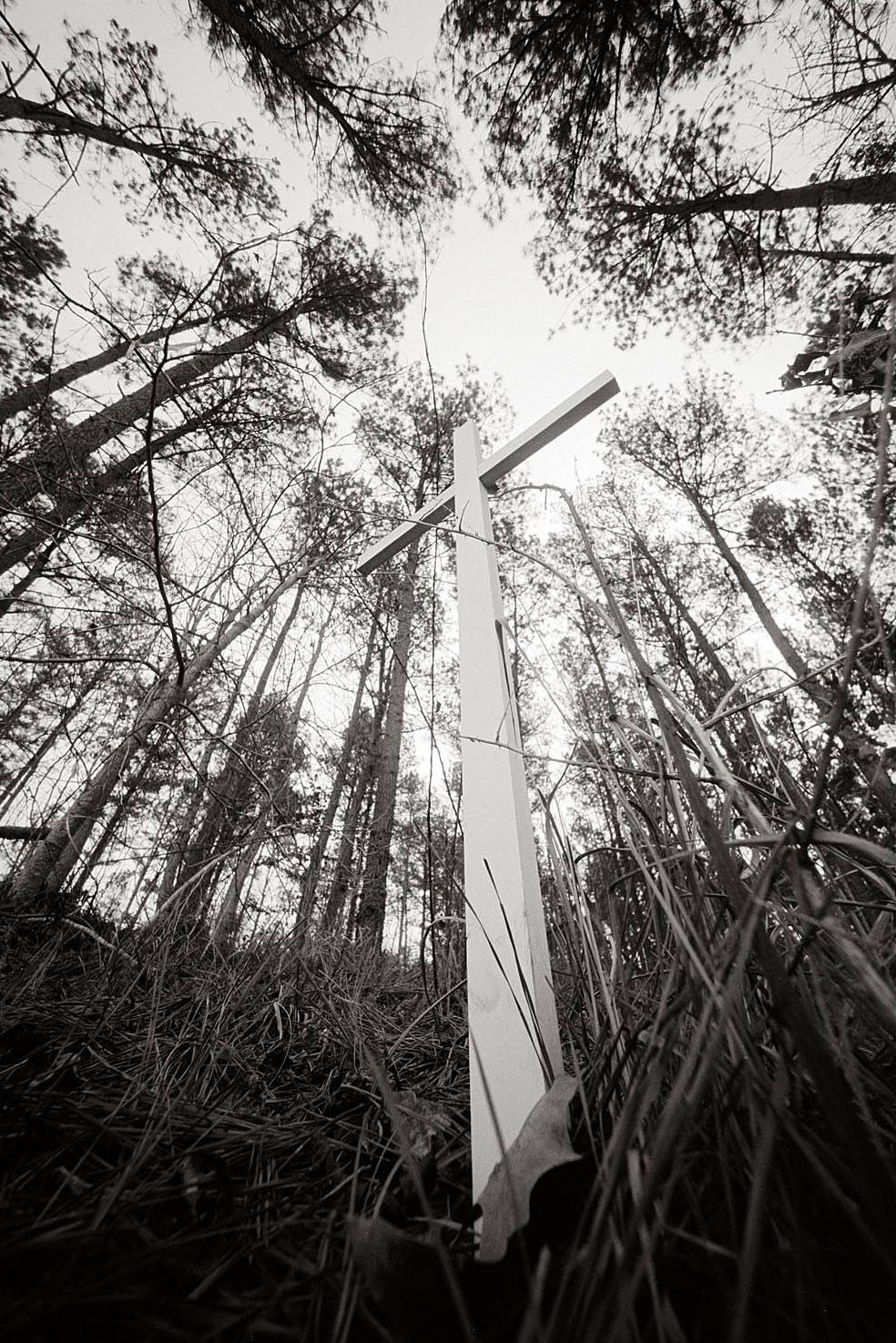 I visited the site in early 2020 and discovered it to be quite fascinating, especially the graves. Apparently after the battle, the deceased were buried in shallow graves right where they had fallen. In 2016 an archaeological survey was performed where they identified about two dozen grave sites, which were marked with bright white crosses. These crosses dot the marshy, waterlogged area of Kettle Creek among the tall slash pines, themselves like grave markers, especially in the vicinity of a summit area where an old church once stood. This is one of those grave markers.